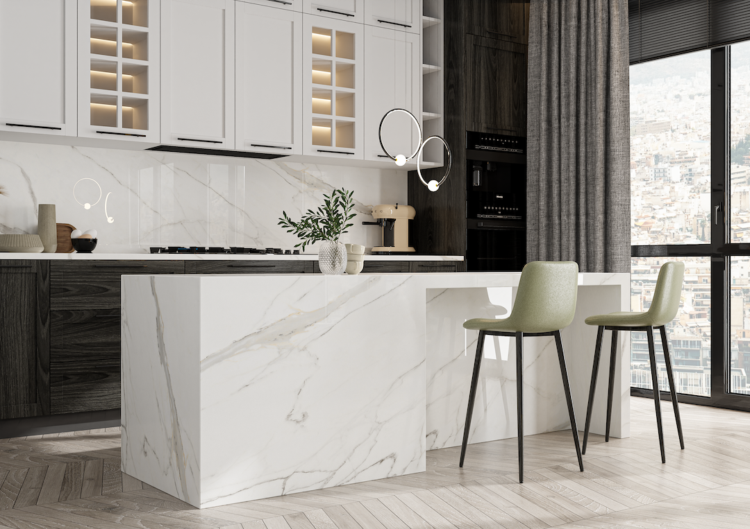 Calacatta Paonazzo is a stunning marble with soft white tones and vibrant veins of red and gold. This rare and striking design is perfect for adding a touch of drama to luxurious interiors. Ideal for making a bold statement in any room.
